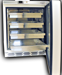 用于血庫的自動(dòng)除霜冰箱中的四個(gè)滑動(dòng)抽屜具有88個(gè)血袋的組合存儲容量。 鋁內(nèi)部易于清潔,基座安裝的強(qiáng)制空氣前端呼吸制冷系統(tǒng)允許機(jī)柜封閉在兩側(cè)。 其空冷冷凝裝置配有過濾網(wǎng),也便于維護(hù)。